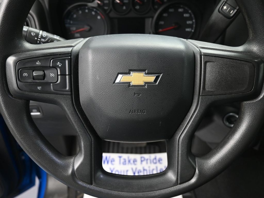 2022 Chevrolet Silverado 1500 Custom Glacier Blue MetallicDrive the Legend. This stunning 2022 Chevrolet Silverado 1500 Custom combines rugged capability with modern style. Finished in a head-turning Glacier Blue Metallic, this 4WD pickup is powered by an efficient yet punchy 2.7L Turbo engine paired with a smooth 8-speed automatic transmission. With only 24,734 miles, this truck is ready for the job site or a weekend getaway.Key Features & HighlightsPerformance: 4WD drivetrain with High Capacity Suspension Package and Auto-Locking Rear Differential for superior off-road handling. Convenience: Custom Convenience Package featuring Remote Start, EZ Lift Power Lock & Release Tailgate, and 120V bed-mounted power outlet. Technology: Chevrolet Infotainment 3 system with Wireless Apple CarPlay & Android Auto, SiriusXM, and a HD Rear Vision Camera. Safety: Equipped with Chevy Safety Assist, including Automatic Emergency Braking, Lane Keep Assist, and Forward Collision Alert.Exterior: 20" High Gloss Black Aluminum Wheels, LED Cargo Area Lighting, and blacked-out accents for a bold, aggressive stance. Why Buy This Silverado? This isn't just a work truck; it's a versatile daily driver. The 4D Crew Cab configuration ensures plenty of room for the whole crew, while the Trailering Package and Hitch Guidance make towing your boat or trailer effortless.